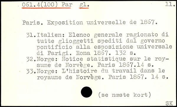 Paris. Exposition universelle de 1867. 31.Italien: Elenco generale ragionato di tutte glioggetti spediti dal governo pontificio alla esposizione universale di Parigi. Rorna 1867.