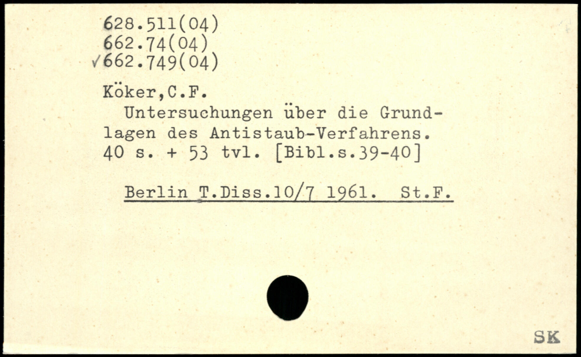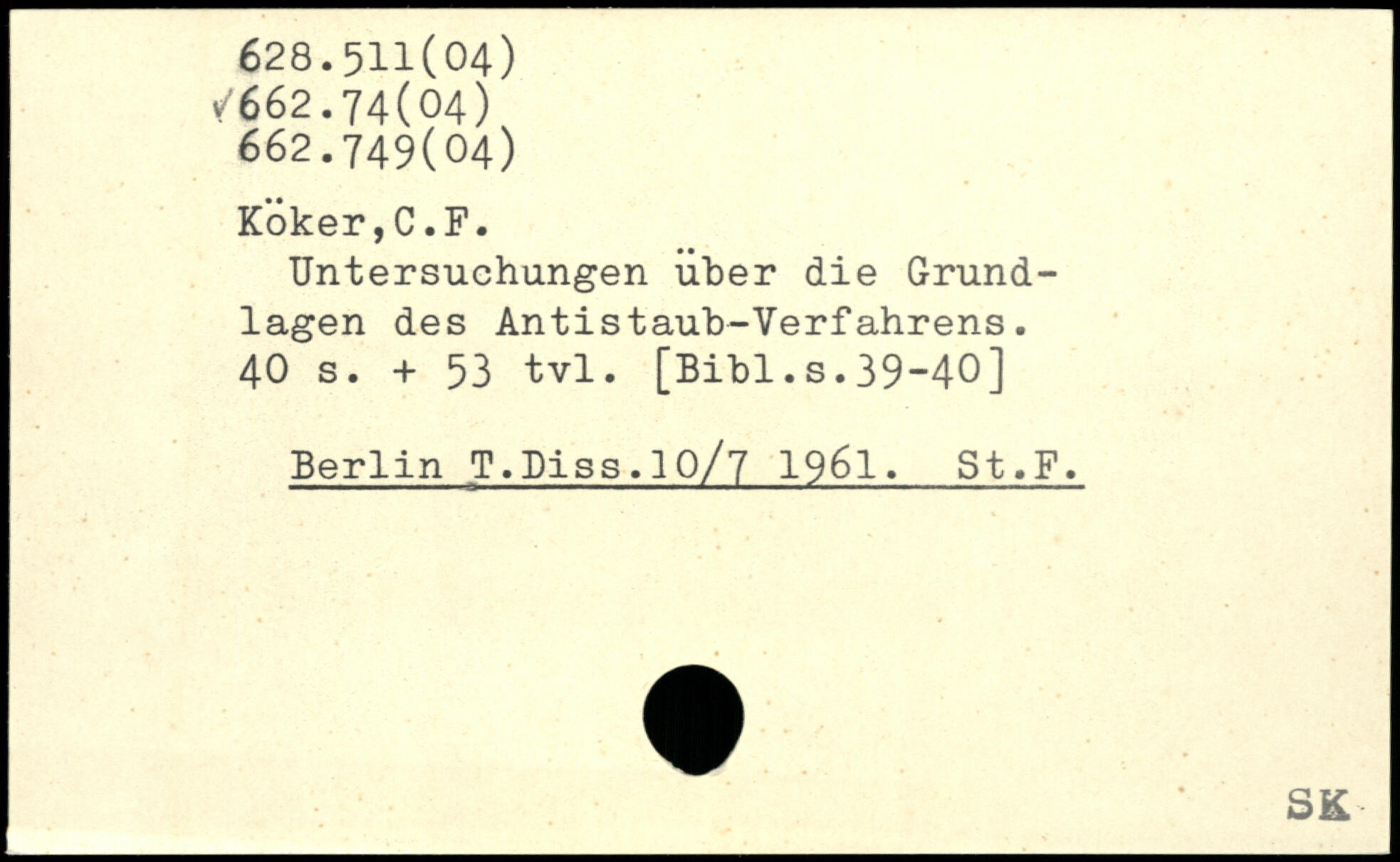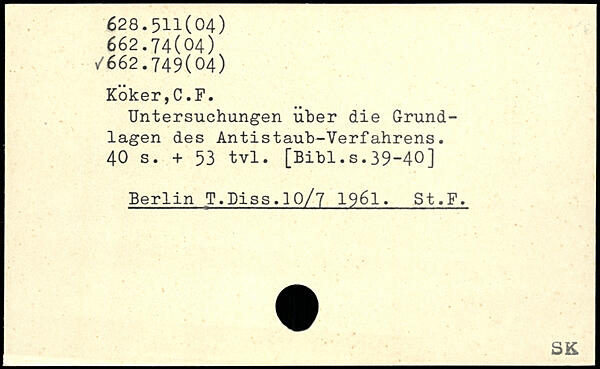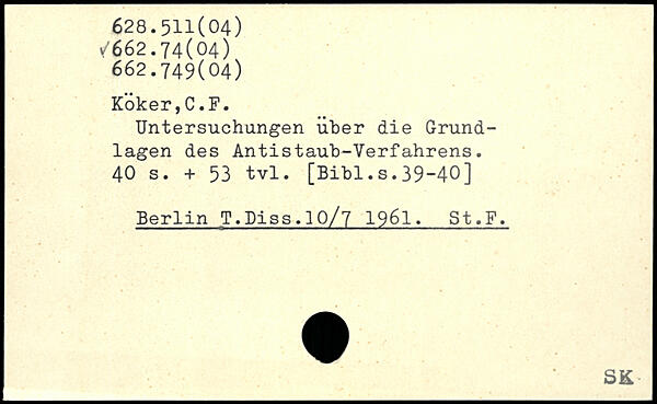 Untersuchungen über die Grundlagen des Antistaub-Verfahrens.