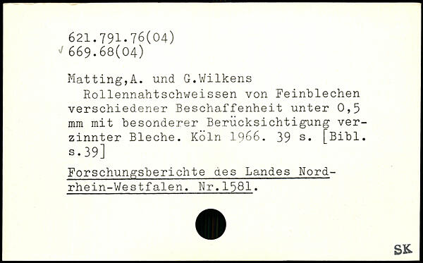 Rollennahtschweissen von Feinblechen verschiedener Beschaffenheit unter 0,5 mm mit besonderer Berücksichtigung verzinnter Bleche.