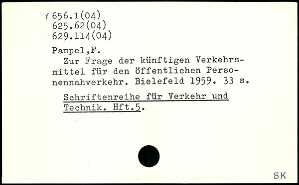 Zur Frage der künftigen Verkehrsmittel für den öffentlichen Personennahverkehr. Bielefeld 1959