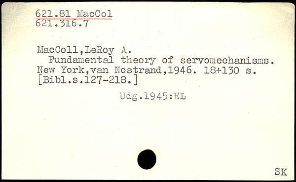 MacColl,LeRoy A. Fundamental theory of servomechanisms. New York,van Nostrand,1946.