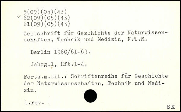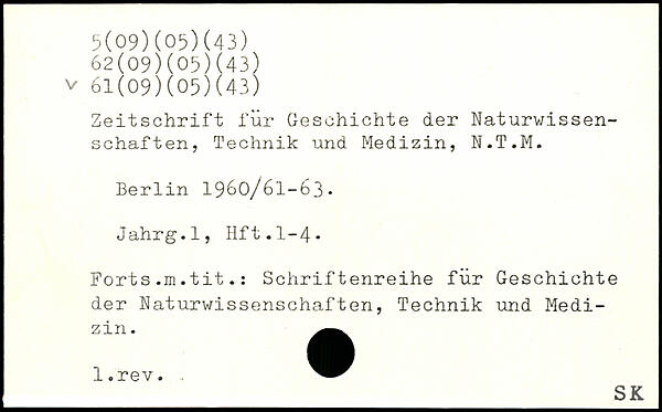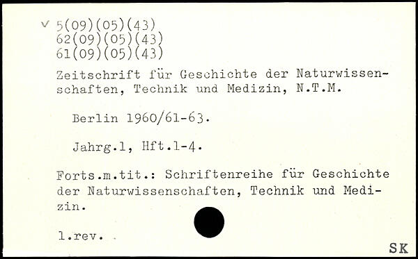 Zeitschrift für Geschichte der Naturwissenschaften, Technik und Medizin, N.T.M.