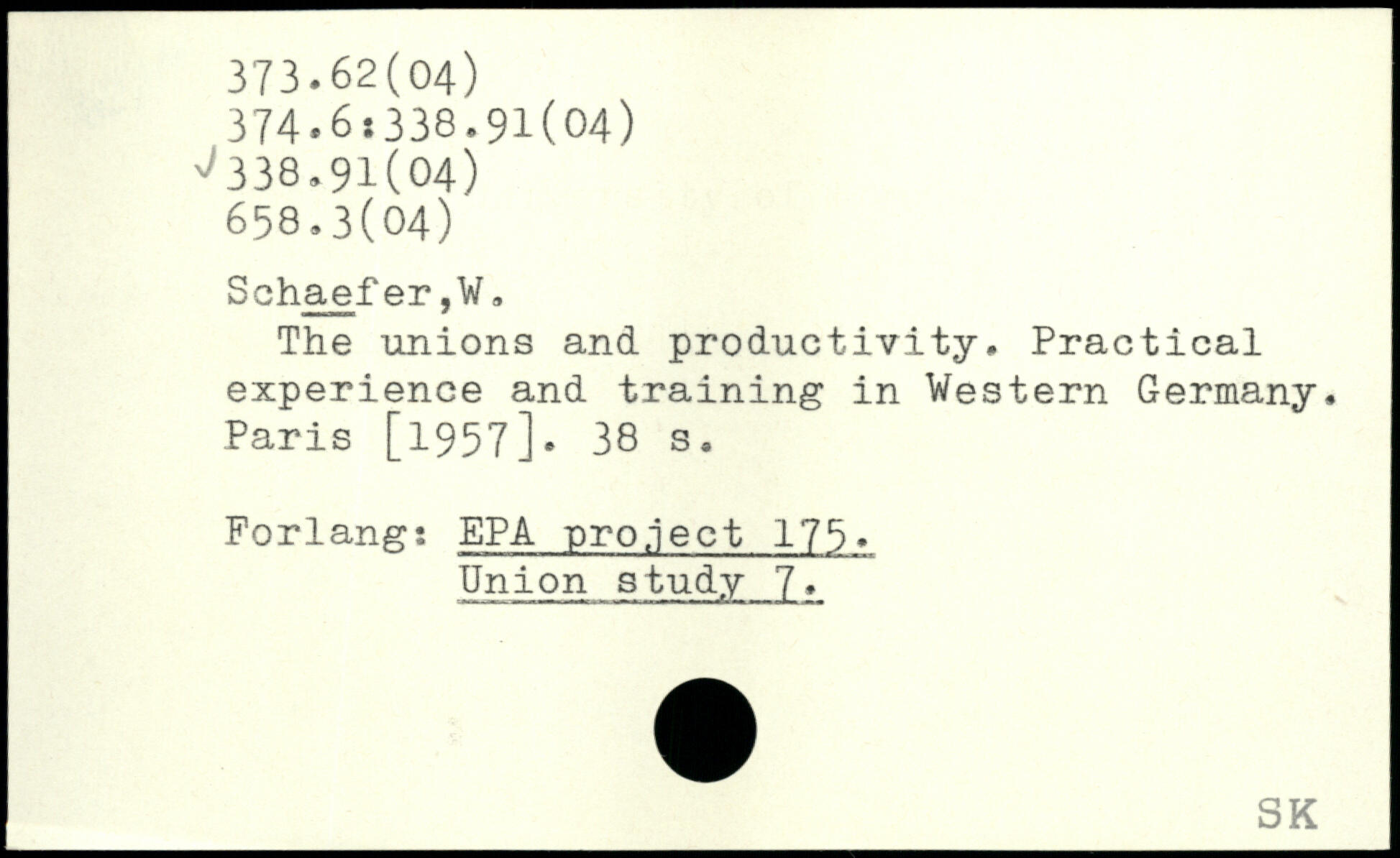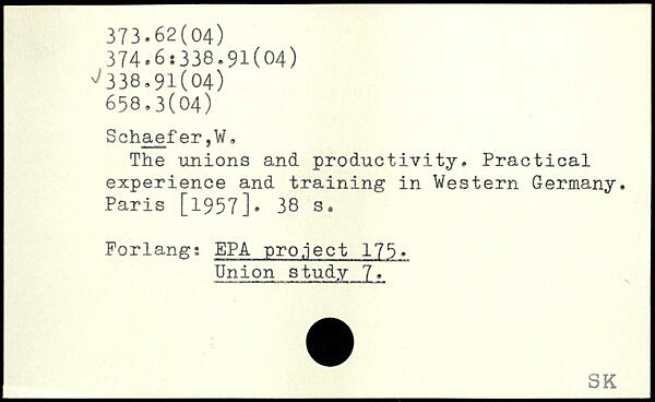 The unions and productivity. Practical experience and training in Western Germany.