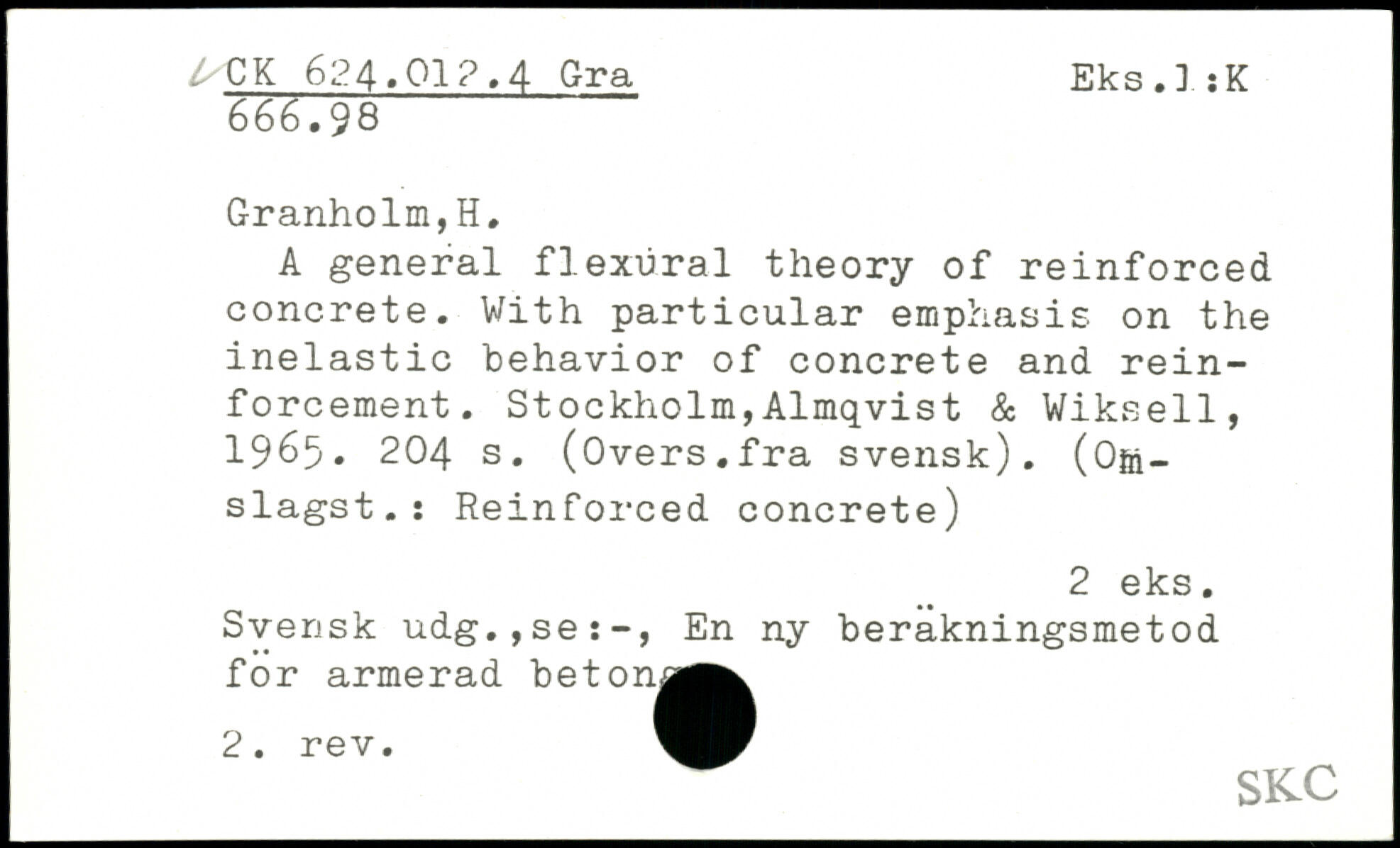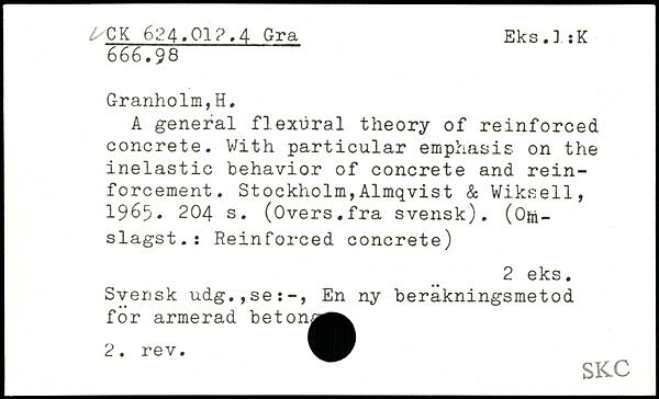 A general flexural theory of reinforced concrete. With particular emphasis on the inelastic behavior of concrete and reinforcement.
