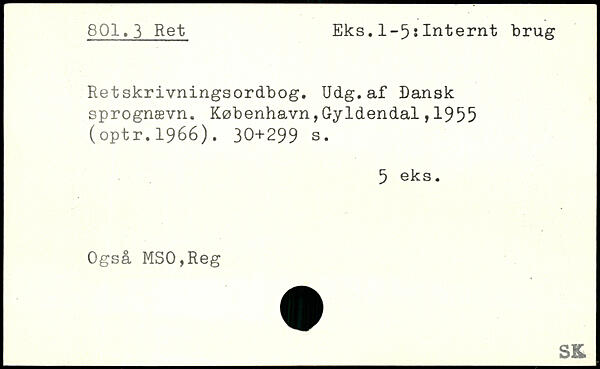 801.3 Ret Eks.1-5. Internt brug Retskrivningsordbog. Udg.af Dansk sprognævn.