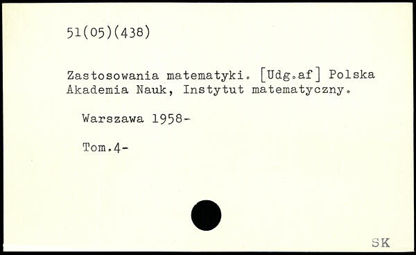 Zastosowania maternatyki. [Udg.afJ Polska Akademia Nauk, Instytut matematyczny