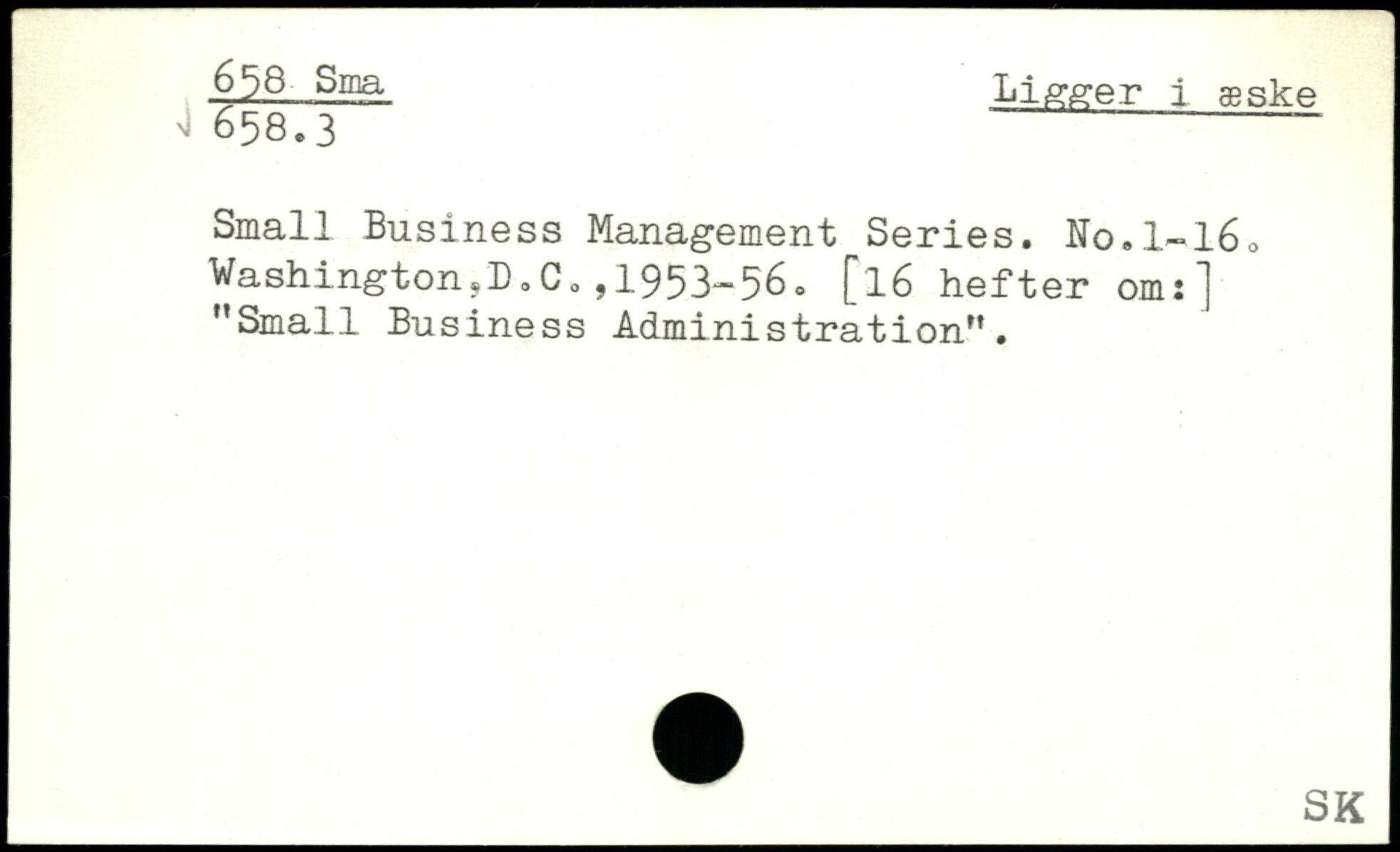 6^8 Sma Ligger i æske 658.3 Small Business Management Series. N0.L-I60 Washington,!).Co ,1953-56.=