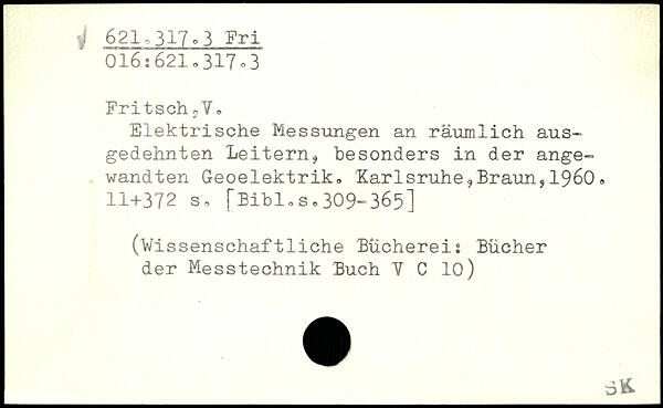 Fritsch pY, Elektrische Messungen an räumlich ausgedehnten Leitern, besonders in der angewandten