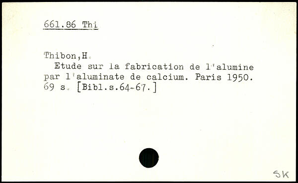 Thibon,He Etude sur la fabrication de l'alumine par Illuminate de calcium.