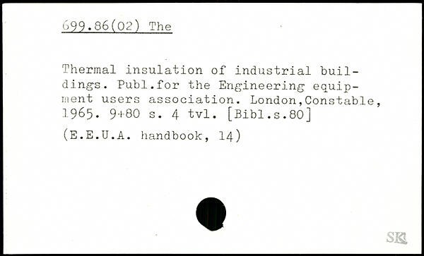 Thermal insulation of industrial buildings. Publ.for the Engineering equipment users association.