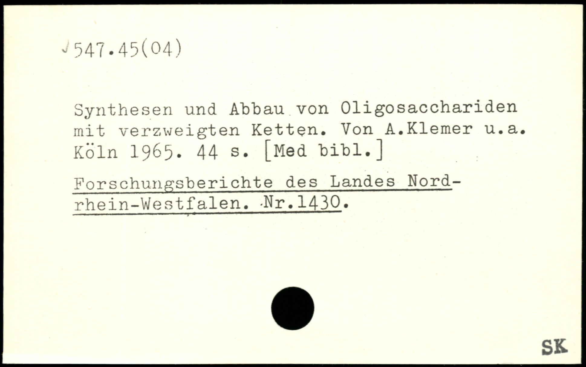 Synthesen und Abbau von Oligosacchariden mit verzweigten Ketten. Von A.Klemer u.a.