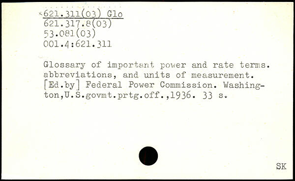 Glossary of important power and rate terms, abbreviations, and units of measurement. [Ed.by] Federal Power Commission. Washing-ton,U.S.govmt.prtg.off.,1936.