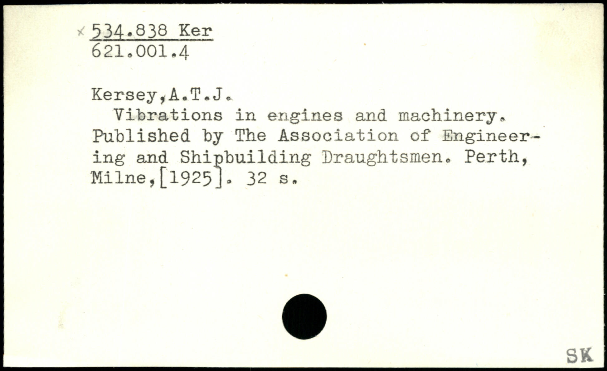 Vibrations in engines and machinery. Published by The Association of Engineering and Shipbuilding Draughtsmen.