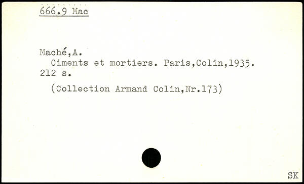 Mâché,A. Ciments et mortiers.