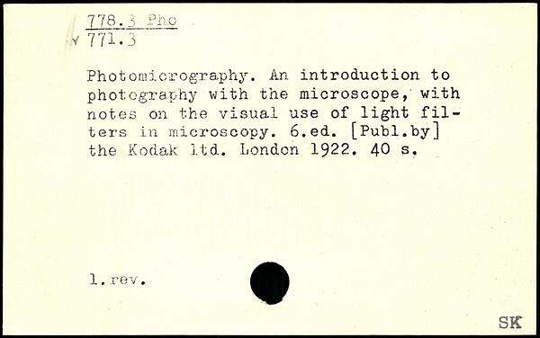 Photomicrography. An introduction to photography with the microscope, with notes on the visual use of light filters in microscopy.