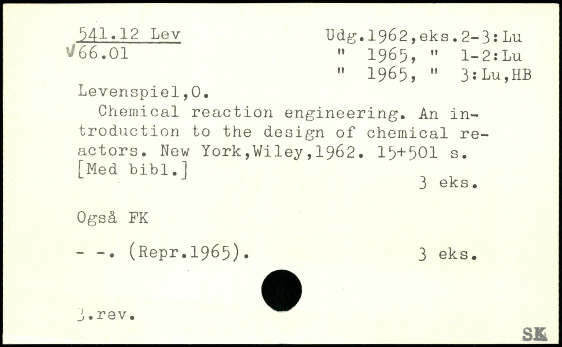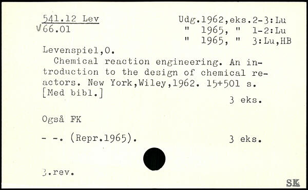 " 1965, " 3:Lu,HB Leverispiel, 0. Chemical reaction engineering. An introduction to the design of chemical reactors.