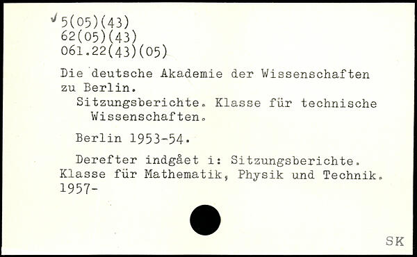 Die deutsche Akademie der Wissenschaften zu Berlin. Sitzungsberichte. Klasse für technische Wissenschaften.