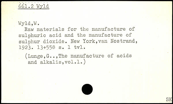Raw materials for the manufacture of sulphuric acid and the manufacture of sulphur dioxide. New York,van Nostrand, 1923.