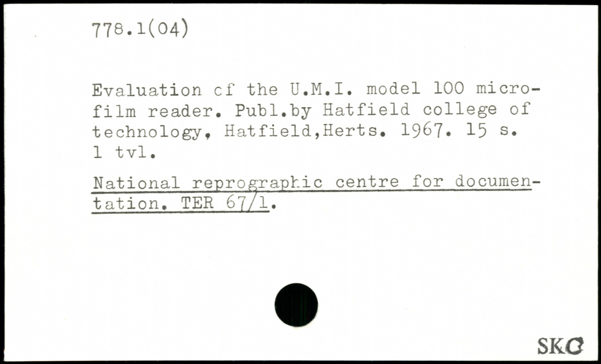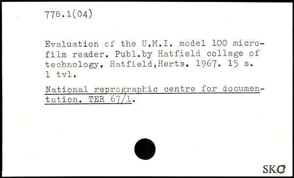 Evaluation cf the U.M.I. model 100 microfilm reader.