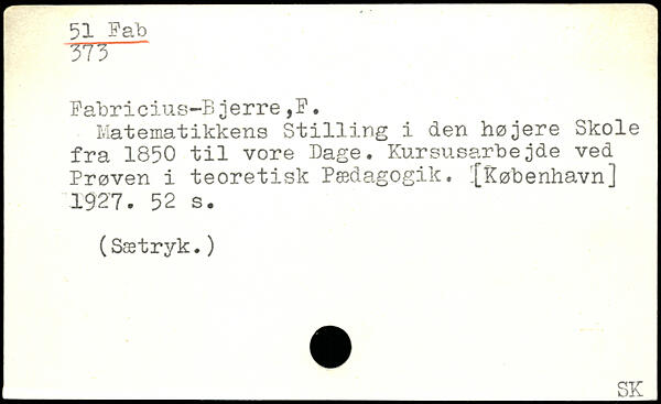 Matematikkens St1111ng i den højere Skole fra 1850 til vore Dage. Kursusarbejde ved Prøven i teoretisk Pædagogik. '