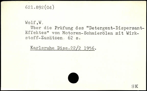 Uber die Prüfung des "Detergent-Dispersant-Effektes" von Motoren-Schmierölen mit Wirkstoff-Zusätzen