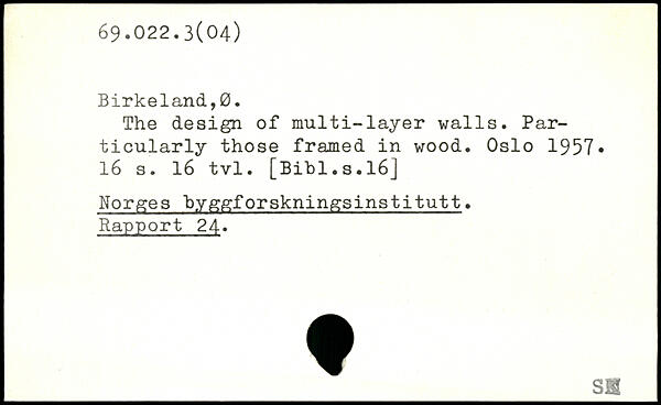 The design of multi-layer walls. Particularly those framed in wood. Oslo 1957. l