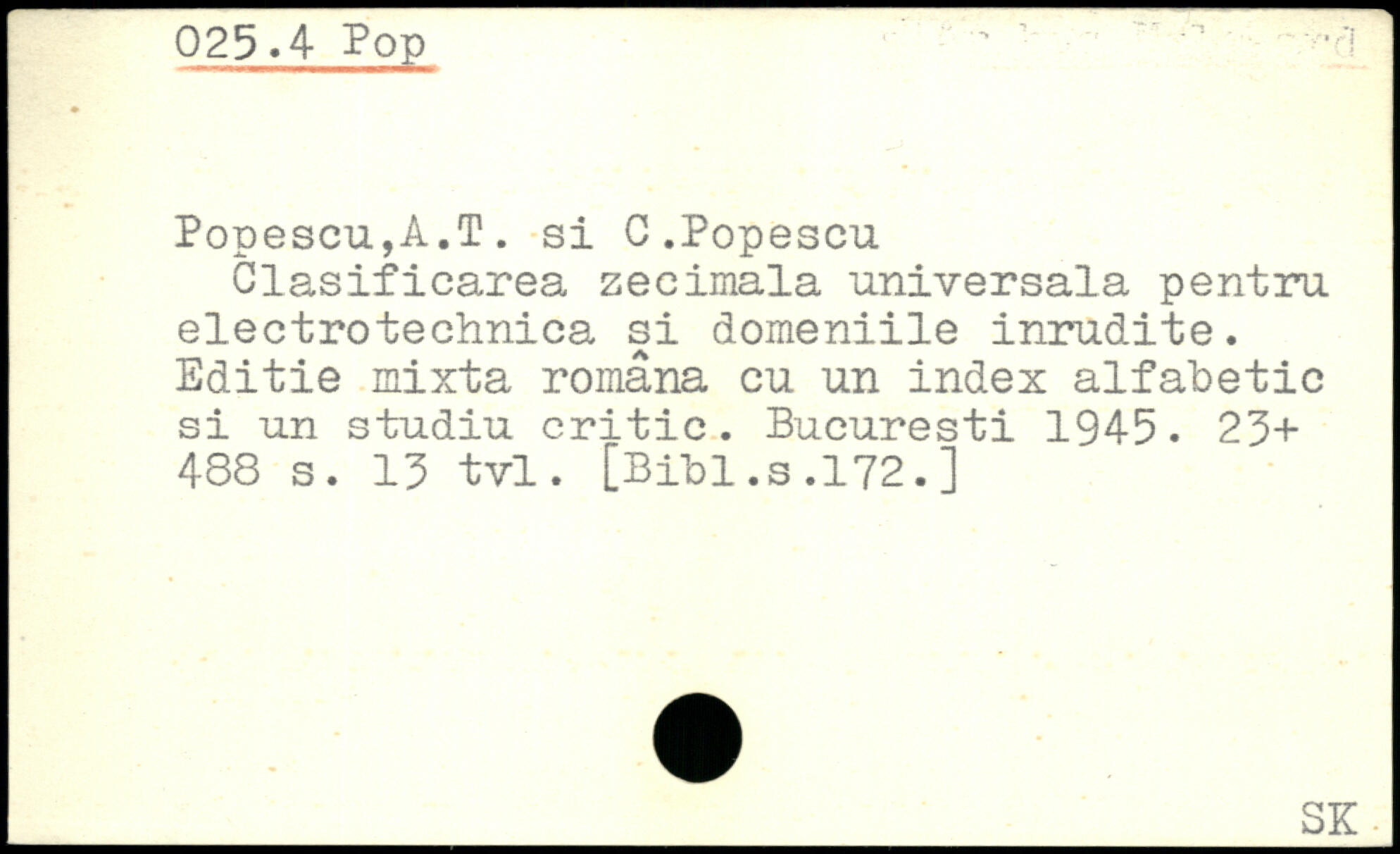 Popescu,A.T. si C .Popescu Clasificarea zecimala universala pentru electrotechnica si domeniile inrudite. Editie mixta romana cu un index alfabetic si un studiu critic.