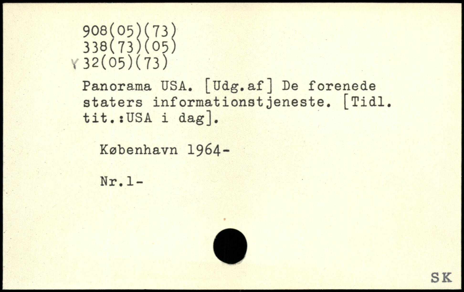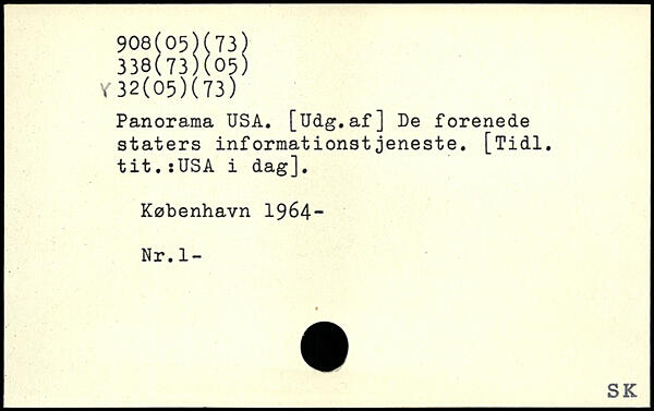 Panorama USA. [Udg.af] De forenede staters informationstjeneste. [Tidl. tit.:USA i dag]