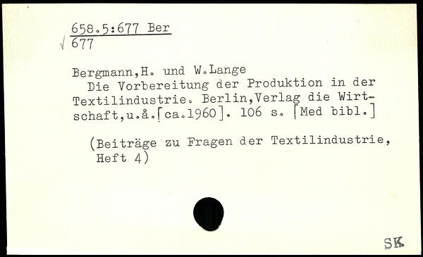 Bergmann,Ho und W,Lange Die Vorbereitung der Produktion in der Textilindustrieo Berlin,Verlag die Wirtschaf t,u.&.fcao1960].