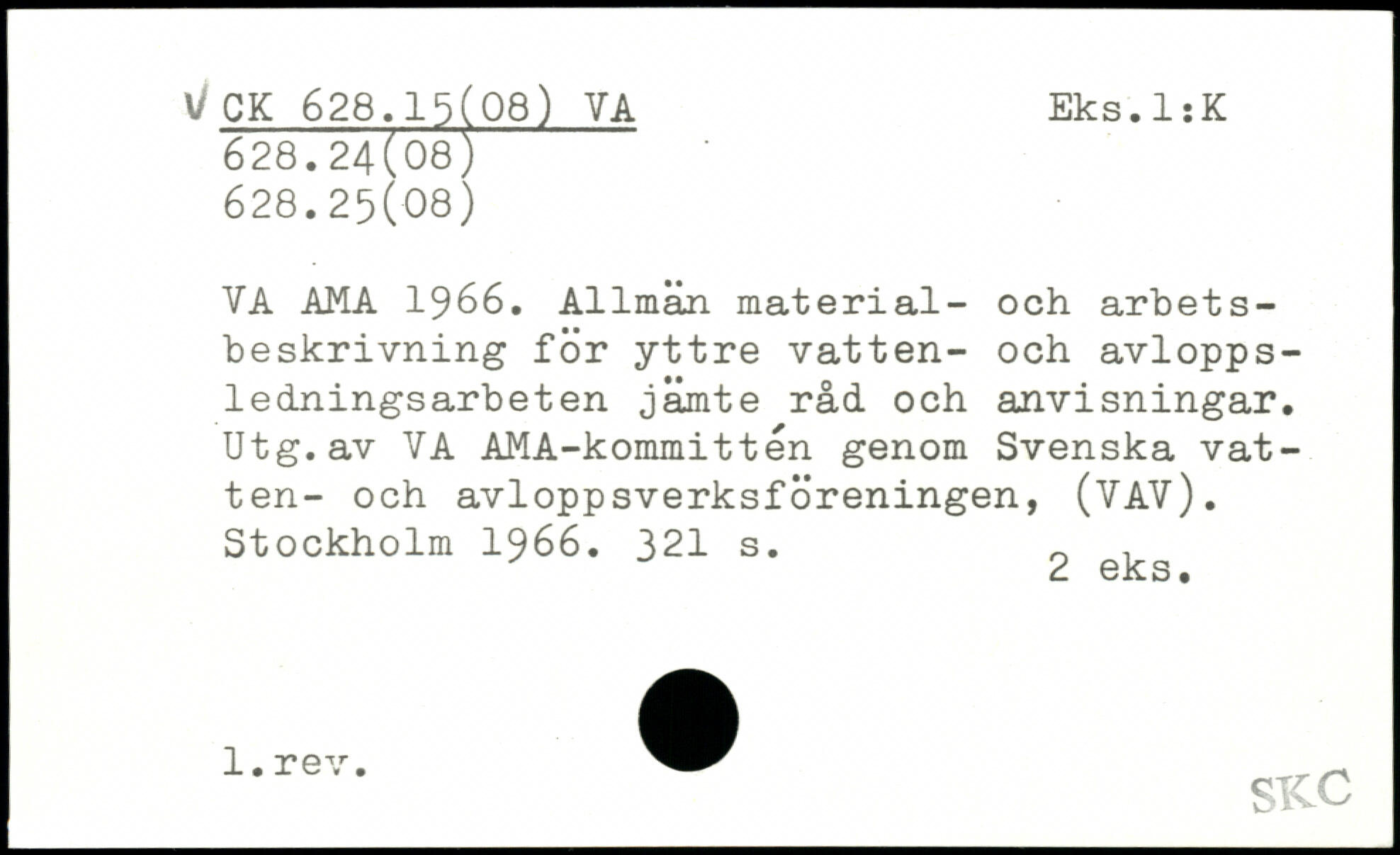 YA AMA 1966. Allmän material- och arbetsbeskrivning för yttre vatten- och avlopps-ledningsarbeten jämte råd och anvisningar. Utg.av YA AMA-kommittén genom Svenska vatten- och avloppsverksföreningen, (VAV).