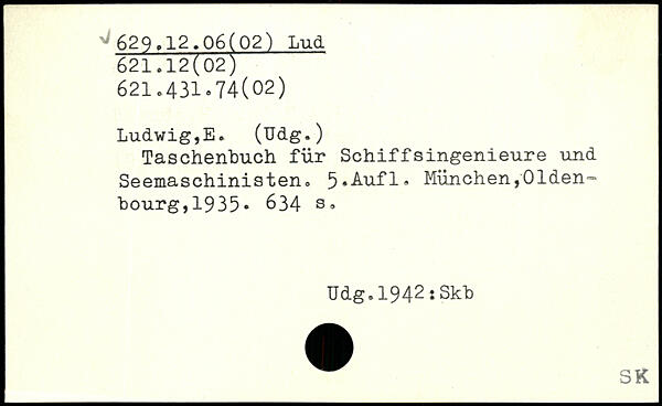 Taschenbuch für Schiffsingenieure und Seemaschinisten. 5.-A-ufl. München,01den~ bourg,1935.