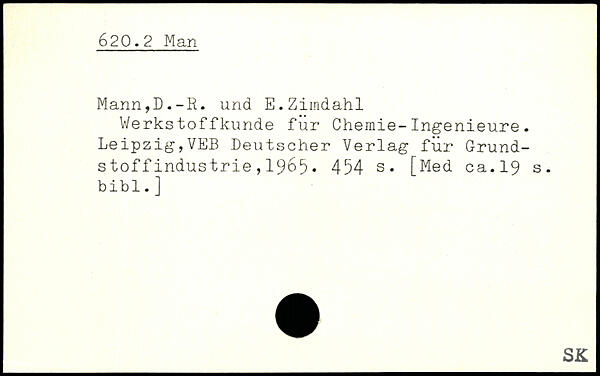 Werkstoffkunde für Chemie-Ingenieure. Leipzig,VEB Deutscher Verlag für Grundstoff industrie,1965.