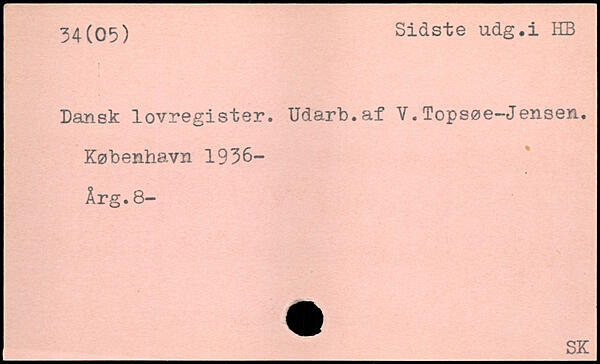 Dansk lovregister. Udarb.af V.Topsøe-Jensen.