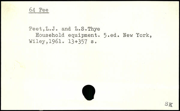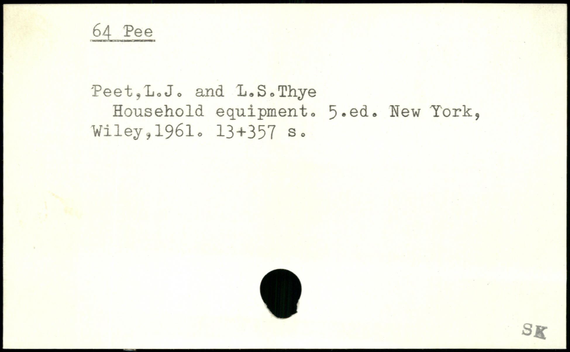 'Peet,LoJo and L.SoThye Household equipment, 5.e<l