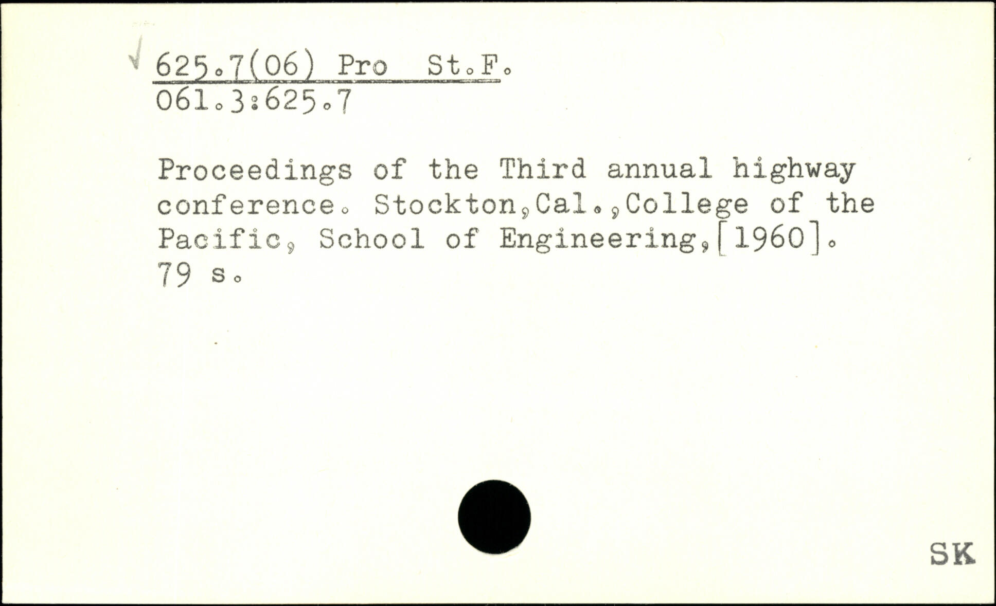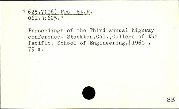 Proceedings of the Third annual highway conferenceo Stockton9Cal,9College of the Pacific, School of Engineering^[1960]0
