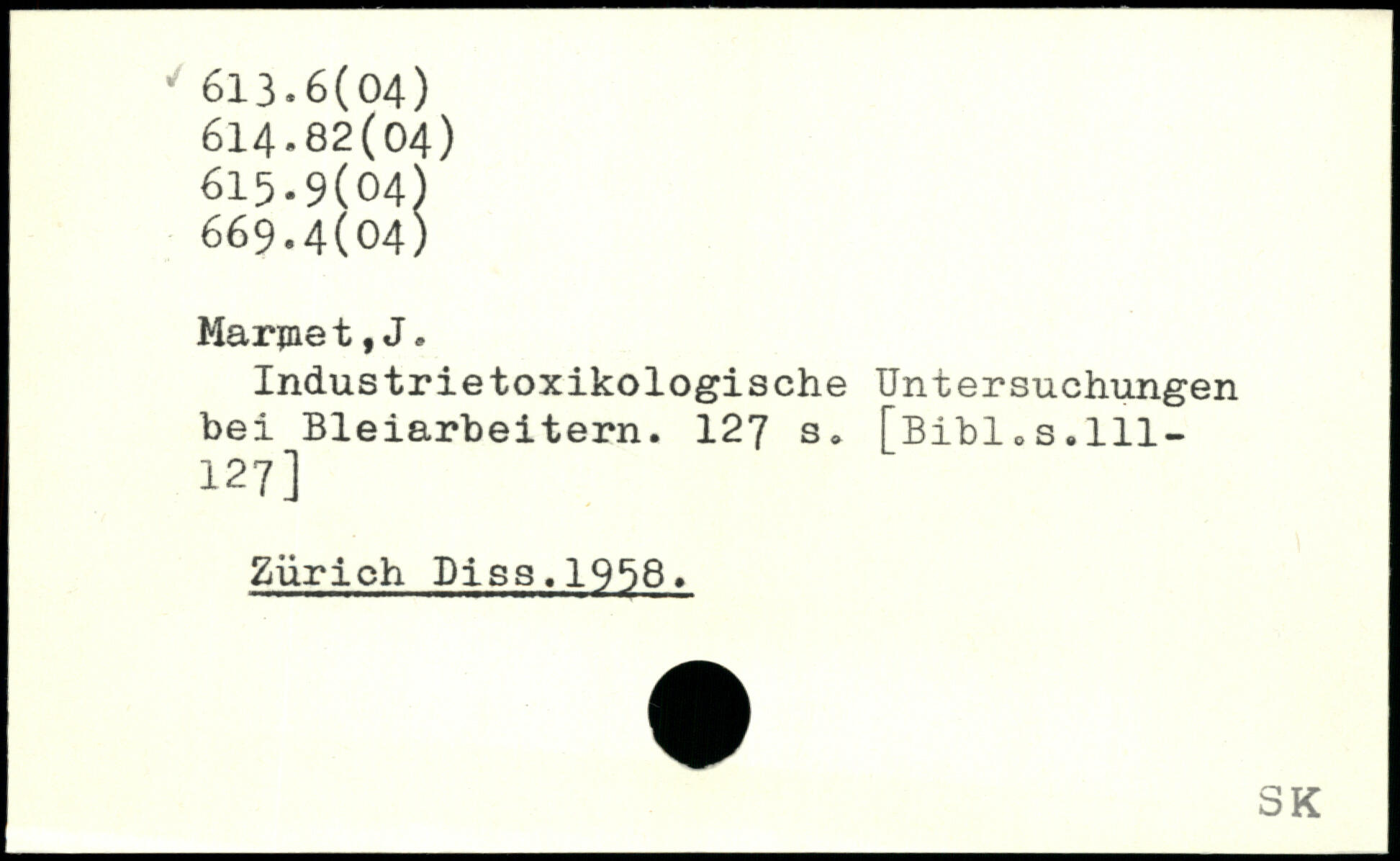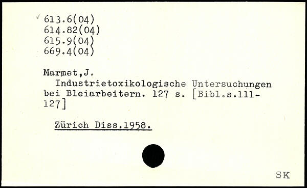 Industrietoxikologische Untersuchungen bei Bleiarbeitern.