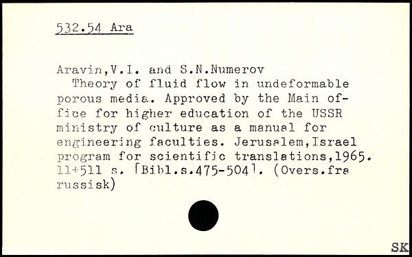 Theory of fluid flow in undeformable porous media. Approved by the Main office for higher education of the USSR ministry of culture as a manual for engineering faculties. Jerusalem,Israel program for scientific translations,1965.