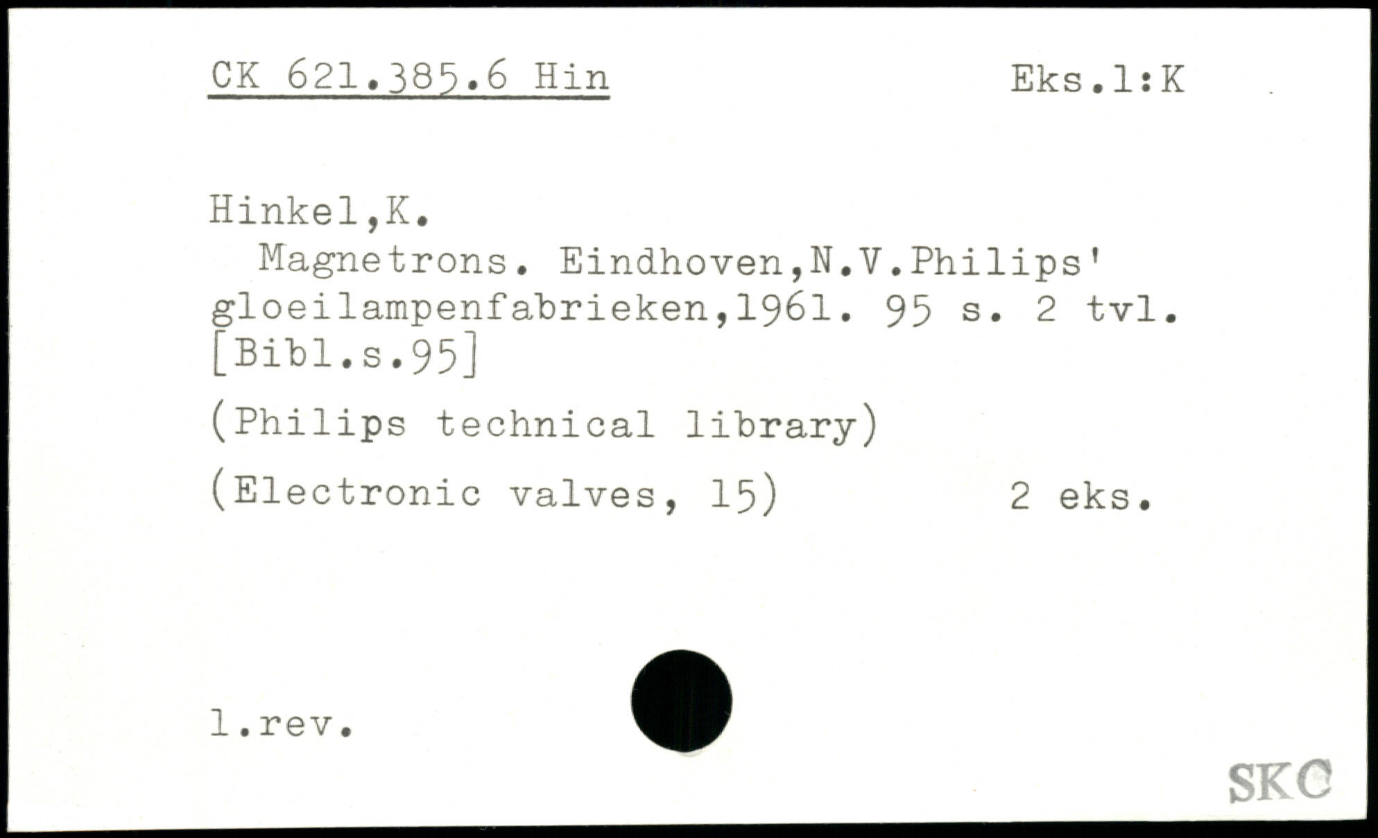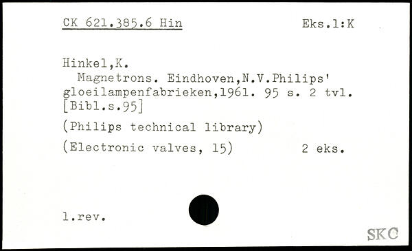 Magnetrons. Eindhoven,N.V.Philips f gloeilampenfahrieken,1961.