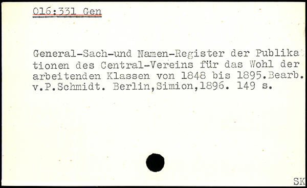 General-Sach-und Namen-Register der Publika tionen des Central-Vereins für das Wohl der arbeitenden Klassen von 1848 bis 1895.3earb. v.P.Schmidt.