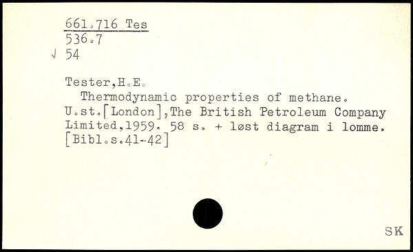 Tester,HcEo Thermodynamic properties of methane, U, st,[London]5The British Petroleum Company Limited,1959