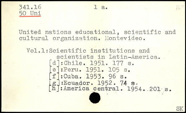 United nations educational, scientific and cultural organization. Montevideo. Yol.1:Scientific institutions and scientists in Latin-America. [dl:Chile. 1951.