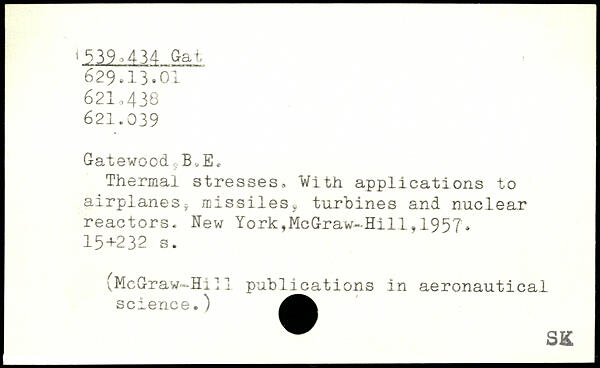 Thermal stresses, With applications to airplanes^ missilesÿ turbines and nuclear reactors.