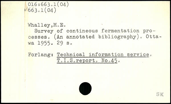 Survey of contineous fermentation processes 0 (An annotated bibliography)