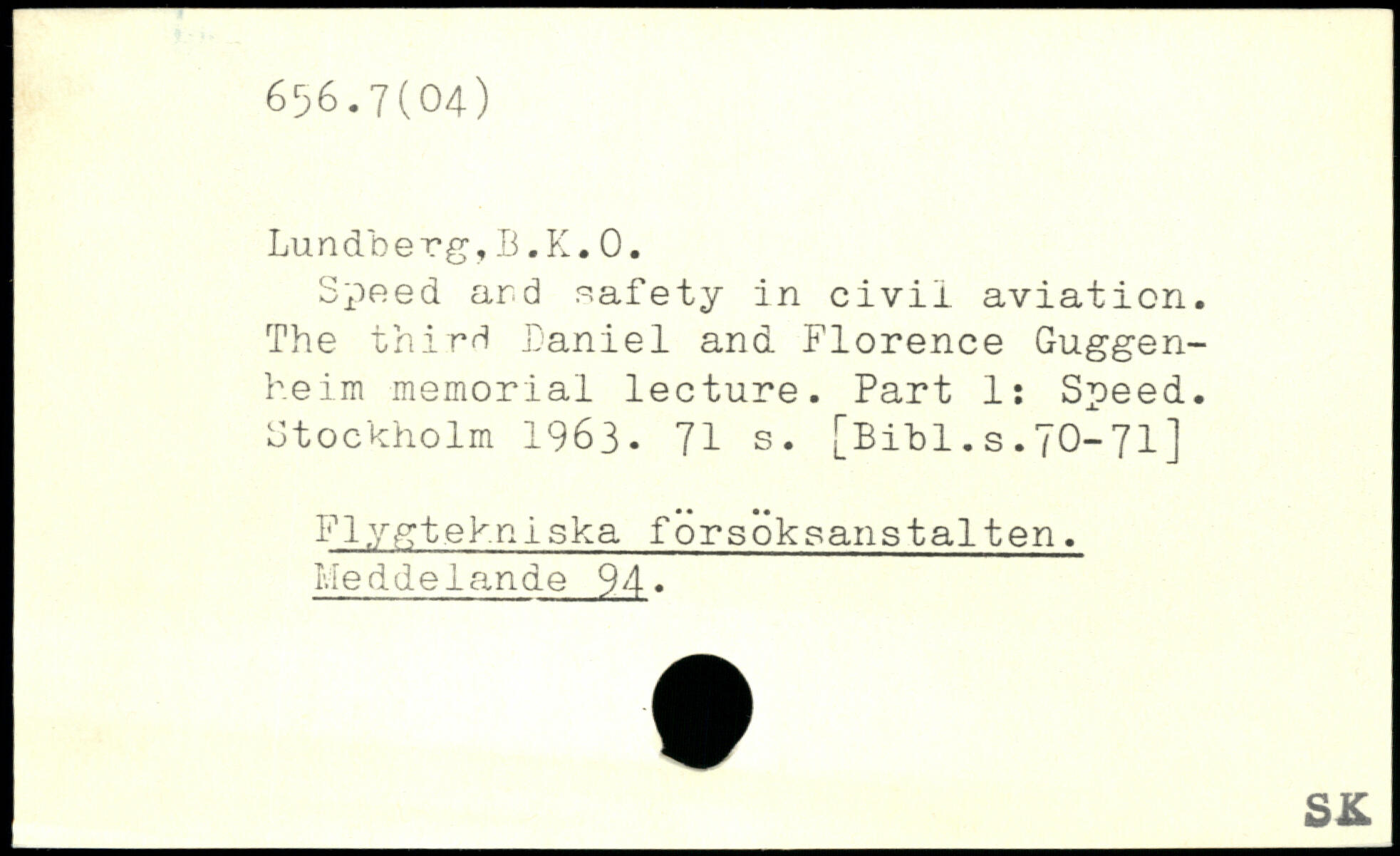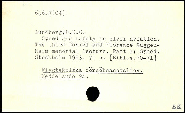 Speed ard safety in civil aviation. The third Daniel and Florence Guggenheim memorial lecture. Part 1: Speed.