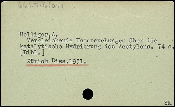 Vergleichende Untersuchungen über die katalytische Hydrierung des Acetylens.