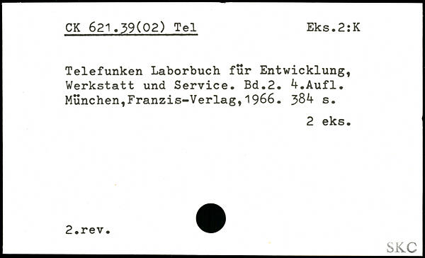 Telefunken Laborbuch für Entwicklung, Werkstatt und Service.