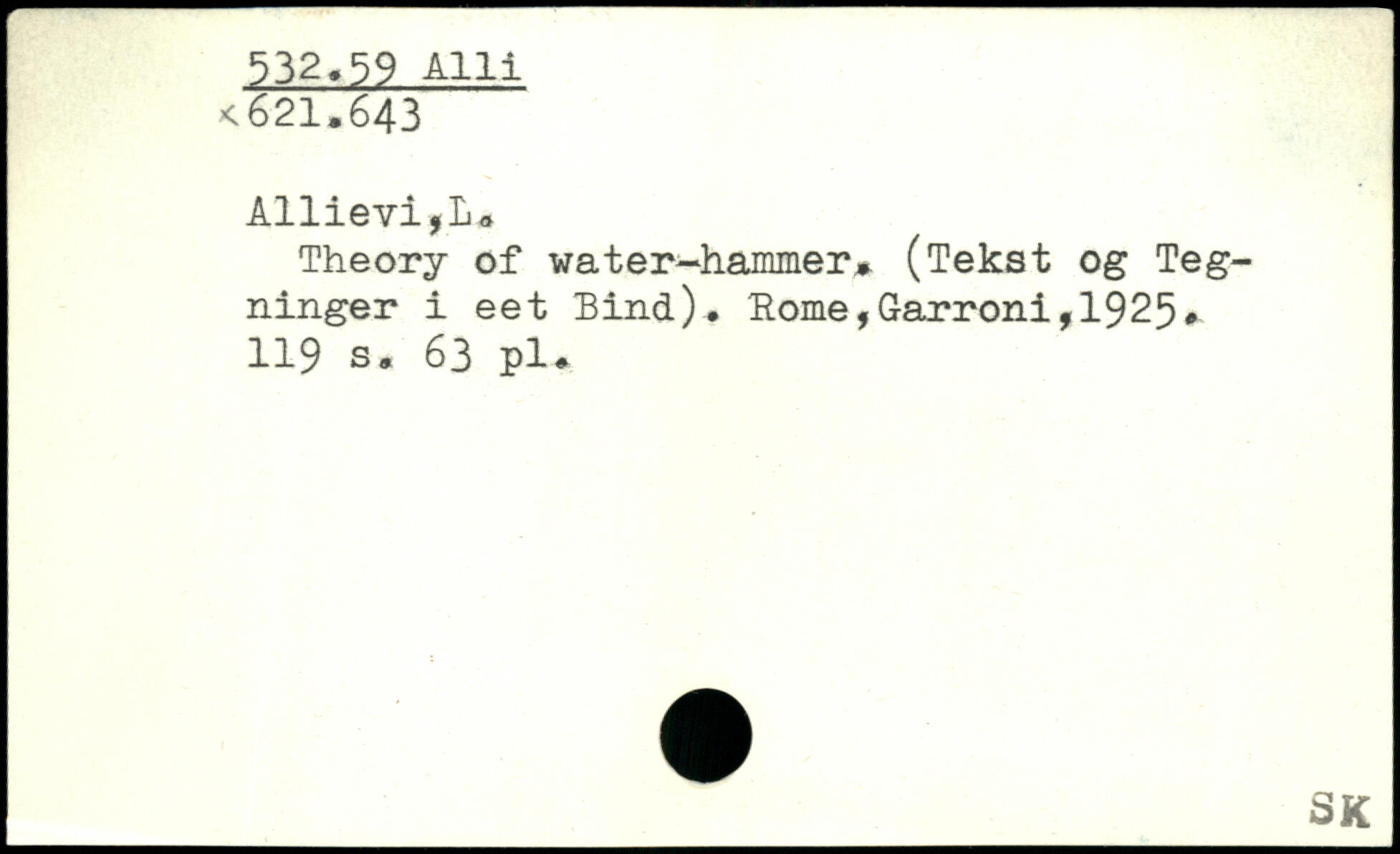 Theory of water-hammer. (Tekst og Tegninger i eet Bind)