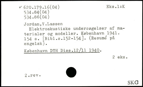 Jordan,V.Lassen Elektroakus tiske undersøgelser af materialer og modeller. København ^194-1.