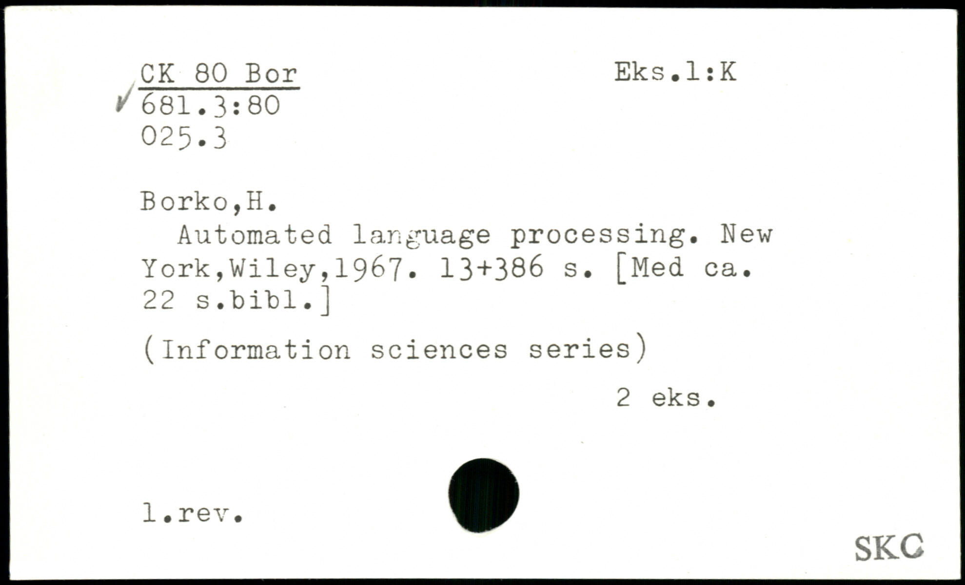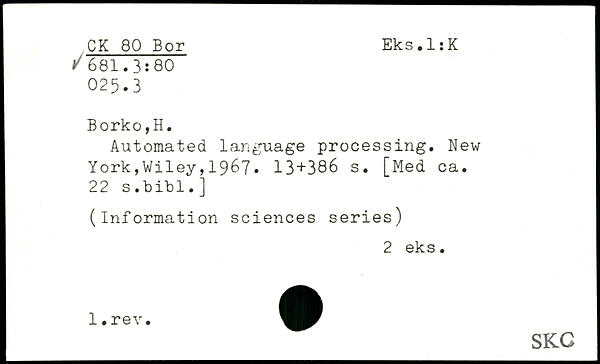 UDK: 80 Bor, 681.3:80, 025.3