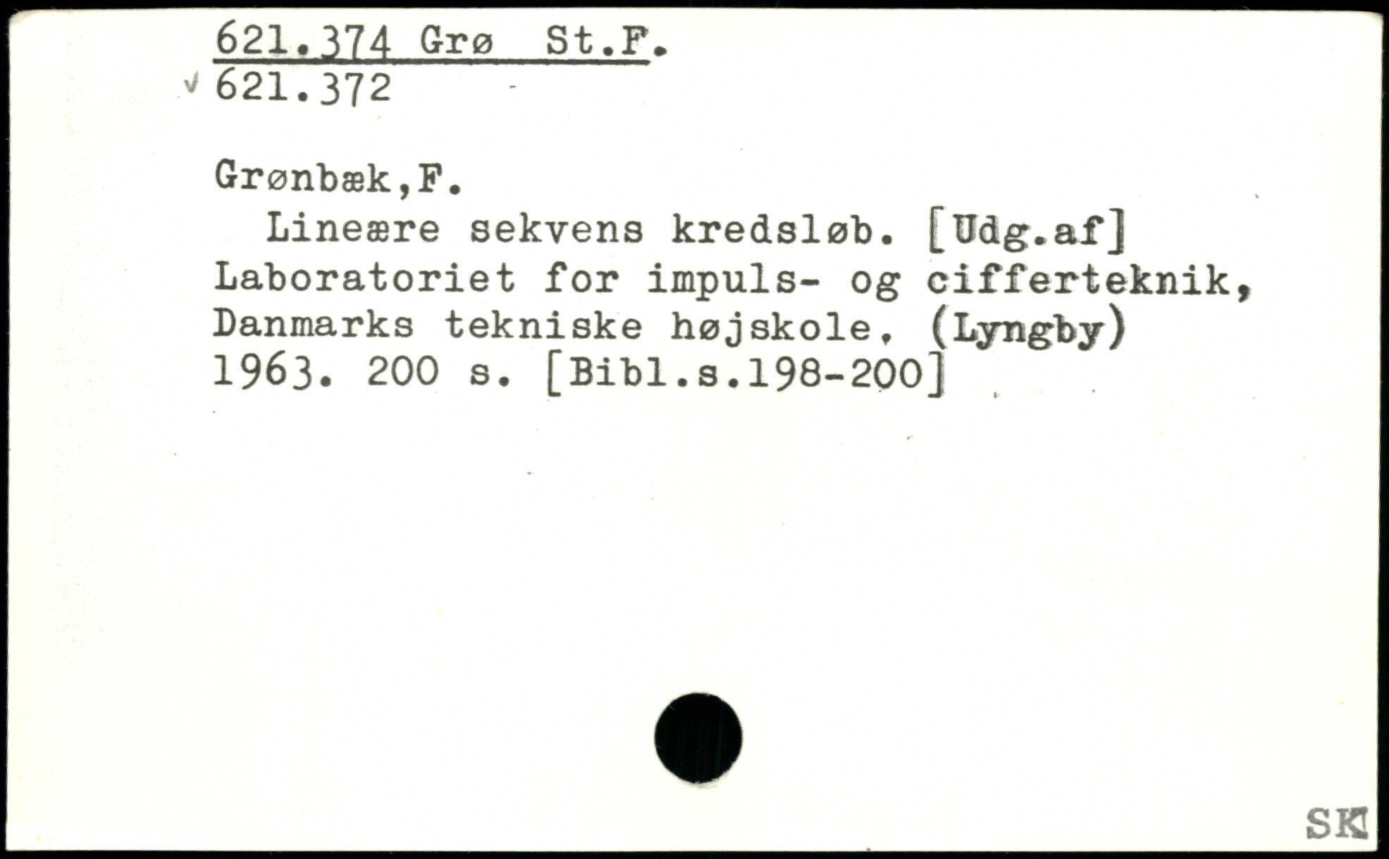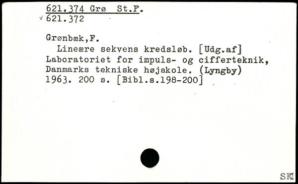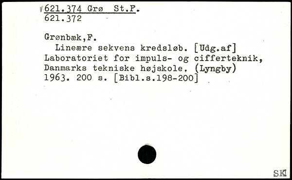 Lineære sekvens kredsløb. [Udg.af] Laboratoriet for impuls- og cifferteknik, Danmarks tekniske højskole. (Lyngby) 1963.